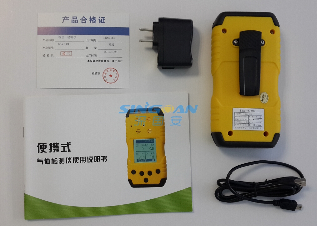 SGA-CD4復(fù)合式四合一氣體檢測儀是深國安電子運(yùn)用多年技術(shù)經(jīng)驗(yàn),研發(fā)的一款便攜式多參數(shù)氣體檢測儀,是2015款四合一氣體檢測儀;產(chǎn)品全部采購國外原裝進(jìn)口氣體傳感器和智能芯片,可實(shí)時(shí)顯示4種目標(biāo)氣體的名稱、濃度值、單位值、日期、時(shí)間和電量情況,具有精準(zhǔn)高、穩(wěn)定性強(qiáng)、誤差率等特點(diǎn);外殼采用高強(qiáng)度ABS+PC高耐燃合金材料組成,堅(jiān)固耐用;高清大屏幕點(diǎn)陣式LCD液晶顯示,美觀大方;USB口充電設(shè)計(jì),方便快捷;中英文兩種語言選擇,溝通無障礙; 內(nèi)置大容量可充電鋰離子電池,可連續(xù)使用12小時(shí)以上;只需一鍵即可同時(shí)調(diào)整4種氣體的零點(diǎn),絕無僅有;2段聲光報(bào)警,時(shí)刻守護(hù)您的安全;