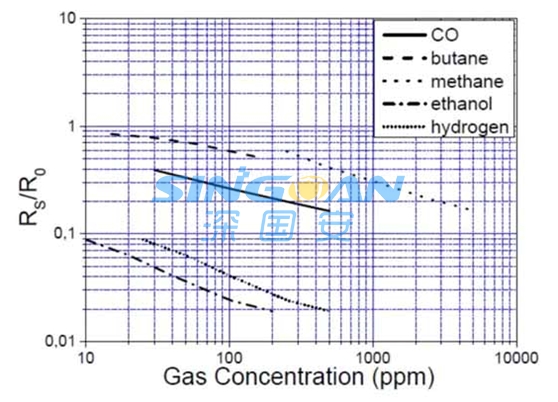 金屬氧化物半導體傳感器(MOS):MOS傳感器的交叉干擾來自兩個方面:PN結(jié)和催化劑。很早人們就發(fā)現(xiàn)硅片上的PN結(jié)的電阻對溫度、濕度和環(huán)境空氣是敏感的。后來人們?yōu)榱朔糯笤撁舾卸?,就?span lang='EN-US'>PN結(jié)上涂上了對可燃氣敏感的催化劑,并加熱之,這樣就構(gòu)成了MOS傳感器。MOS也不具有氣體選擇性,從市面上的傳感器技術(shù)資料看來,凡是可燃氣,MOS都是有響應的,如下圖