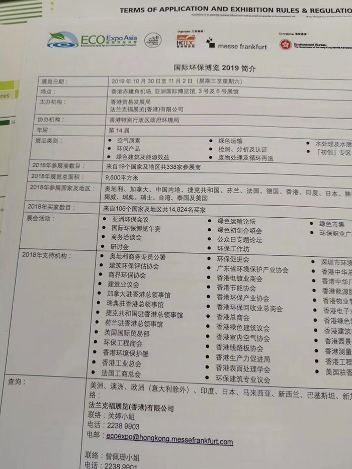 香港國際環(huán)保展覽會由香港貿(mào)發(fā)局舉辦,是香港專業(yè)環(huán)保展。香港國際環(huán)保博覽會是香港專業(yè)環(huán)保貿(mào)易博覽會。