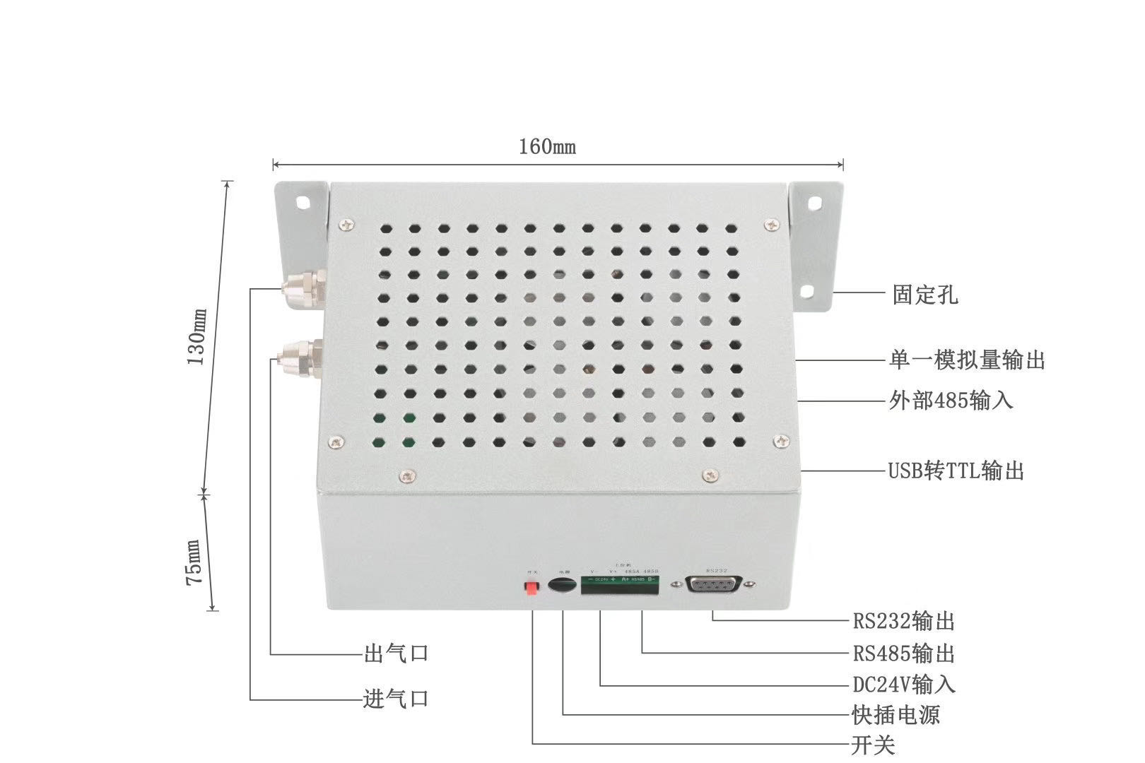 SGA-100H-4多參數(shù)大氣監(jiān)測智能盒(最多4種氣體)是深國安電子運(yùn)用十多年的氣體檢測行業(yè)經(jīng)驗(yàn),專門針對(duì)微型空氣站、化工園區(qū)廠界、惡臭監(jiān)測系統(tǒng)等多個(gè)氣體同時(shí)檢測的需求,所自主研發(fā)生產(chǎn)的一款智能化、標(biāo)準(zhǔn)化、模塊化的大氣環(huán)境監(jiān)測產(chǎn)品;可根據(jù)客戶需要,自由組合1-4種任意氣體,量程不限,氣體不限,技術(shù)原理不限。統(tǒng)一24V供電,RS485-RTU、232、USB三種信號(hào)同時(shí)輸出,方便客戶對(duì)接使用;內(nèi)置進(jìn)口真空泵主動(dòng)采樣,反應(yīng)速度更靈敏;核芯技術(shù)搭載深國安SGA-700系列智能型氣體傳感器,方便拔插,利于維護(hù)。自動(dòng)地址碼識(shí)識(shí)技術(shù),無需固定位置。結(jié)合深國安專利技術(shù)和智能算法,具有分辨率高、檢出限低、數(shù)據(jù)穩(wěn)定、維護(hù)成本低、使用方便等特點(diǎn)。網(wǎng)孔散熱技術(shù),方便氣體流通??蛻糍徺I后,可單機(jī)聯(lián)電腦使用,也可以配套系統(tǒng)使用。
